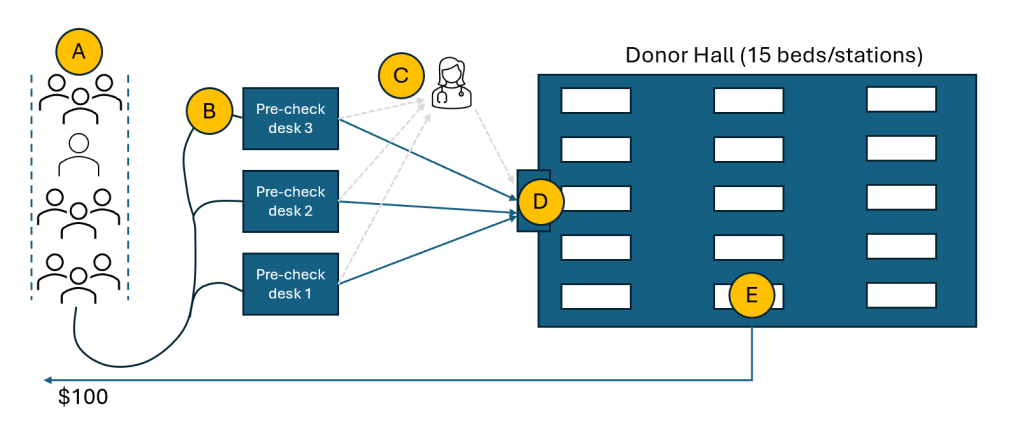 - Enhance donor experience by reducing total cycle time (target: 100 minutes).